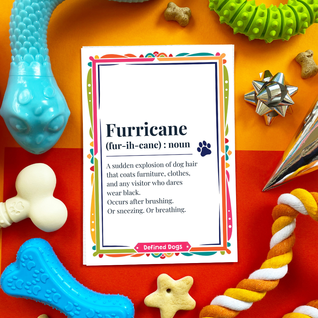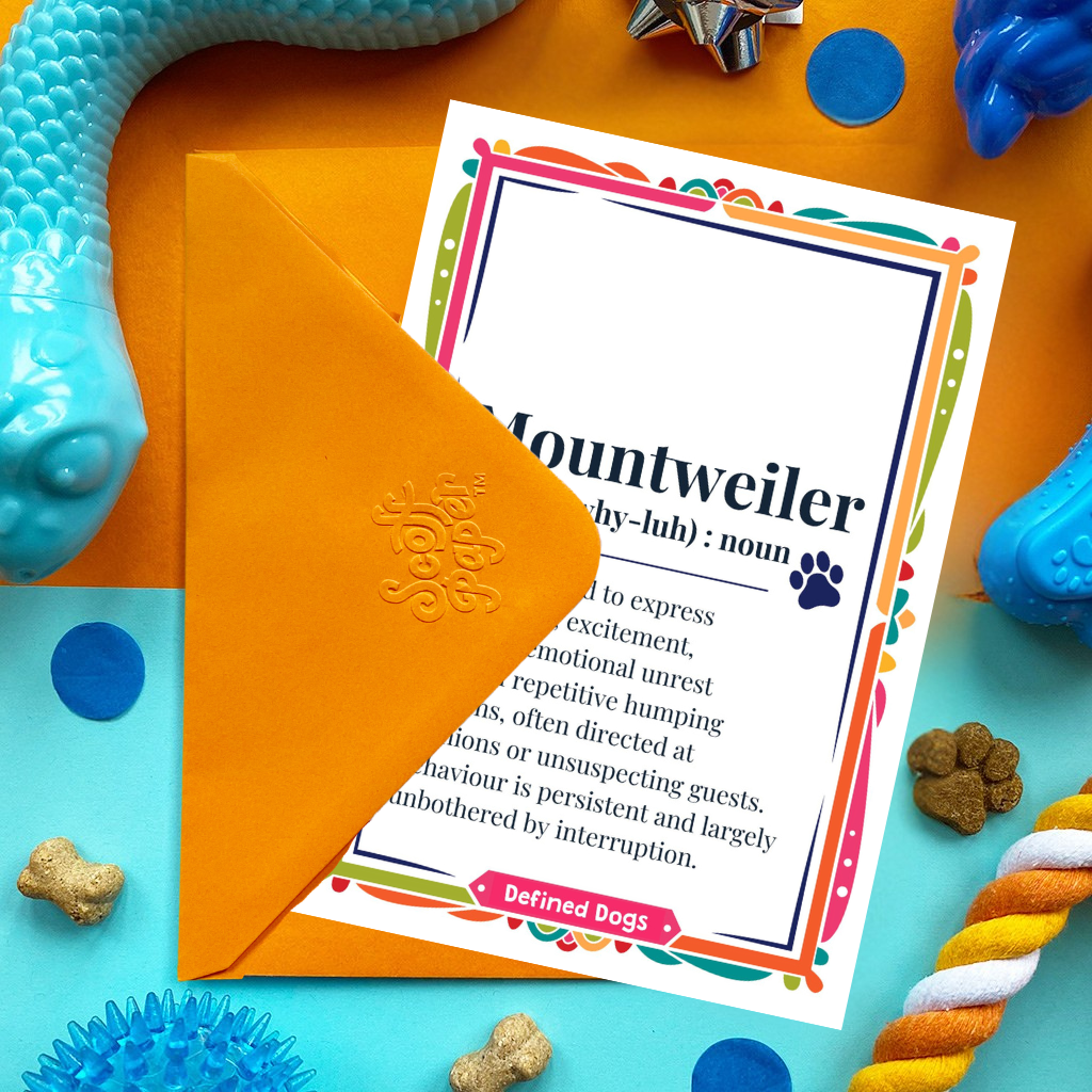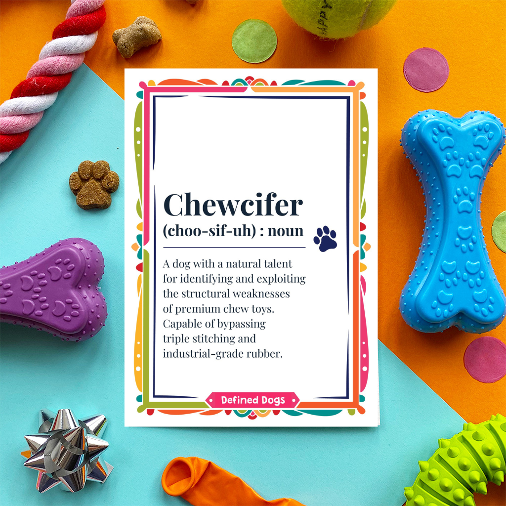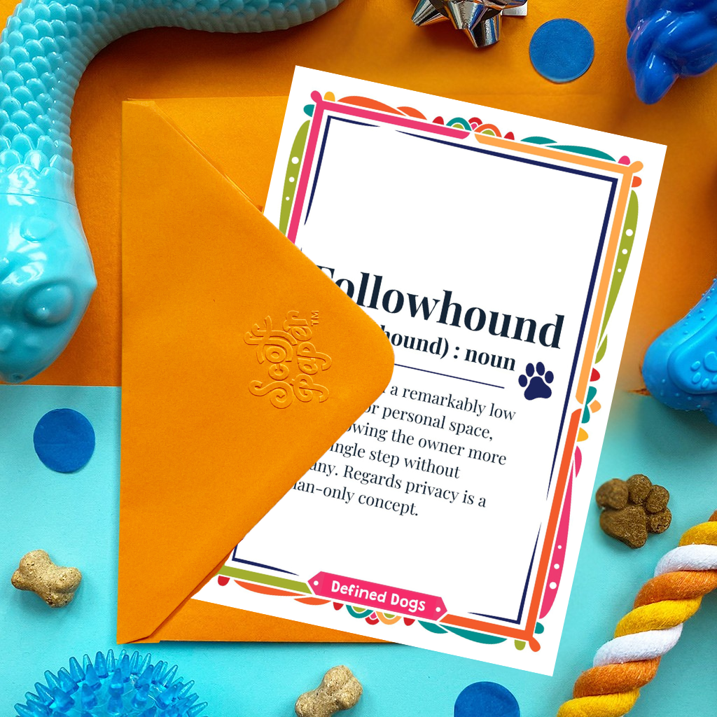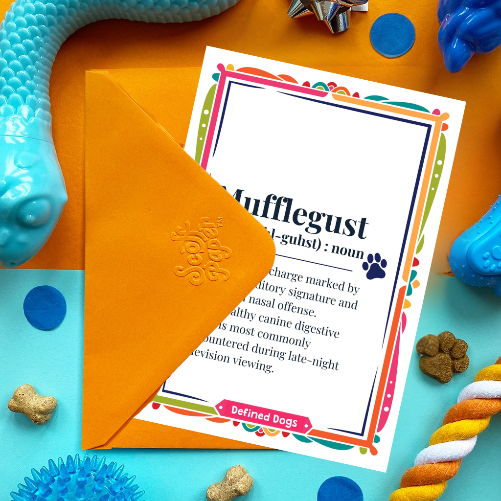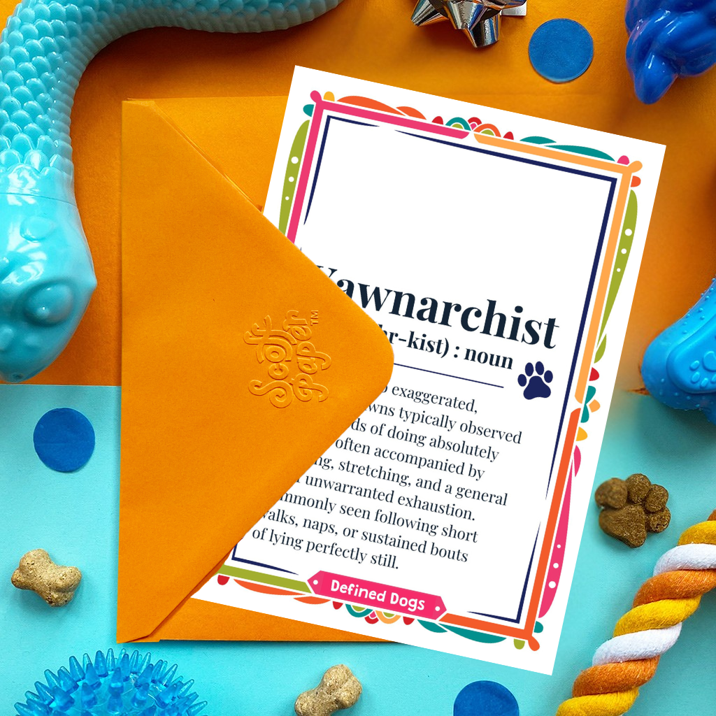 The Defined Dogs collection celebrates the wonderfully chaotic personalities that make living with dogs so entertaining. Each edible dog card features a humorous dictionary-style definition describing a type of dog we all recognise — from cuddle addicts to professional snack thieves.