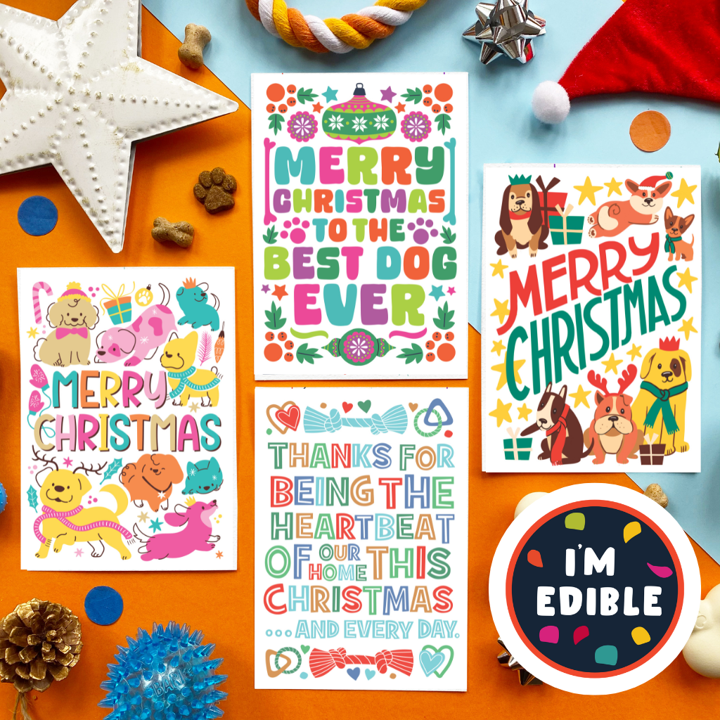 Wholesale mega value Christmas Bundle - 48 Edible Dog Cards & 12 FREE Pens